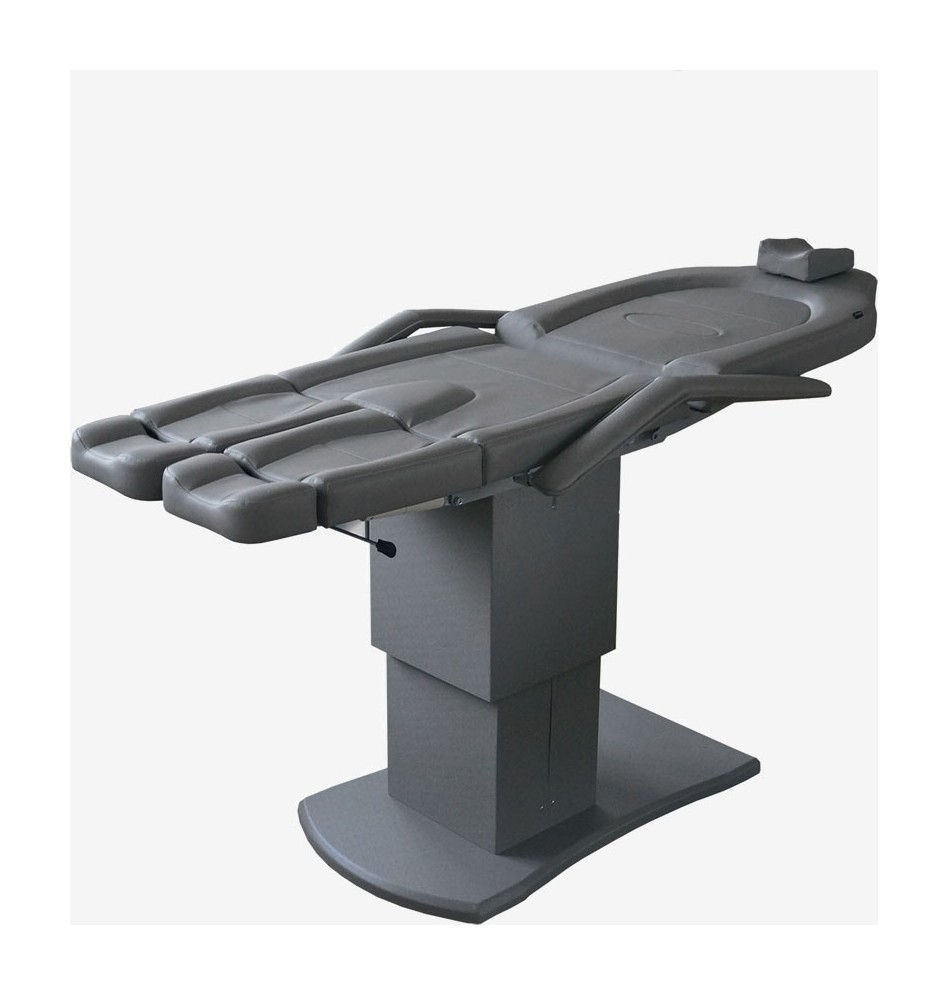 Педикюрное кресло оснащено двумя электромоторами, обеспечивающими регулировку высоты и угла наклона сиденья. Опоры для ног фиксируются при помощи газ-лифтов. Кресло легко раскладывается в горизонтальное положение, образуя ровную поверхность. Надежная конструкция системы подъема обеспечивает высокую устойчивость кресла даже при максимальной высоте. Управляется при помощи ручного проводного пульта.