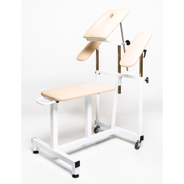 Скамья поставляется в собранном виде. Каркас сделан из стальной профильной трубы с порошковым полимерным покрытием, устойчивым к ударам, сколам и обработке дезинфицирующими растворами. Опоры – регулируемые. Мягкие элементы выполнены из фанеры, поролона, покрыты искусственной кожей SKADEN (Польша) устойчивой к истиранию, химическим дезинфектантам и УФ-излучению. Технология обтяжки - без швов, облегчающая процесс чистки и санобработки. Цвет обивки – по желанию заказчика. Регулировки: Высота головной секции и упоров для рук – механическая, бесступенчатая, фиксация – винт Барашек. Головная секция – по углу наклона от 10°до 90° - механическая, бесступенчатая, фиксация – винт Барашек. Упоры для рук - по углу наклона 340º - механическая, бесступенчатая, фиксация – ручка-фиксатор. Скамья оснащена колесами с шинами из литой резины для легкого перемещения.