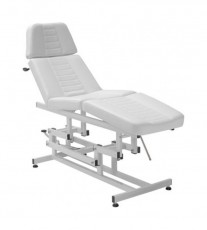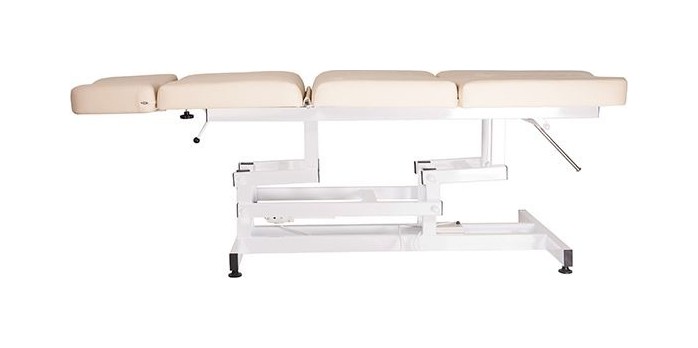 Кушетка универсальная с электрической регулировкой высоты, раскладывающаяся в горизонтальное положение. Элегантная кушетка оснащена анатомическим матрасом из высококачественного поролона, обтянутого искусственной кожей. Металлический каркас белого цвета. Спинка регулируется с помощью пневматики. Регулировка нижней части осуществляется механическим способом. Имеет регистрационное удостоверение на медицинское изделие № РЗН 2018/7566 от 31.08.2018г.