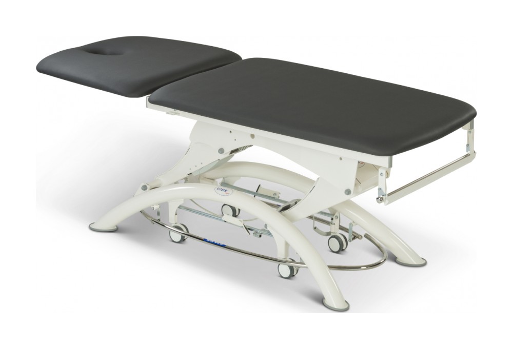 Понравилось, что стол двухсекционный: подходит и для массажа, и для обычного осмотра. Спинная секция поднимается без рывков, длины хватает, чтобы комфортно разместить пациента. Управление простое, педаль ногой — отличное решение, руки всегда свободны.