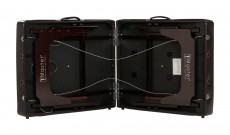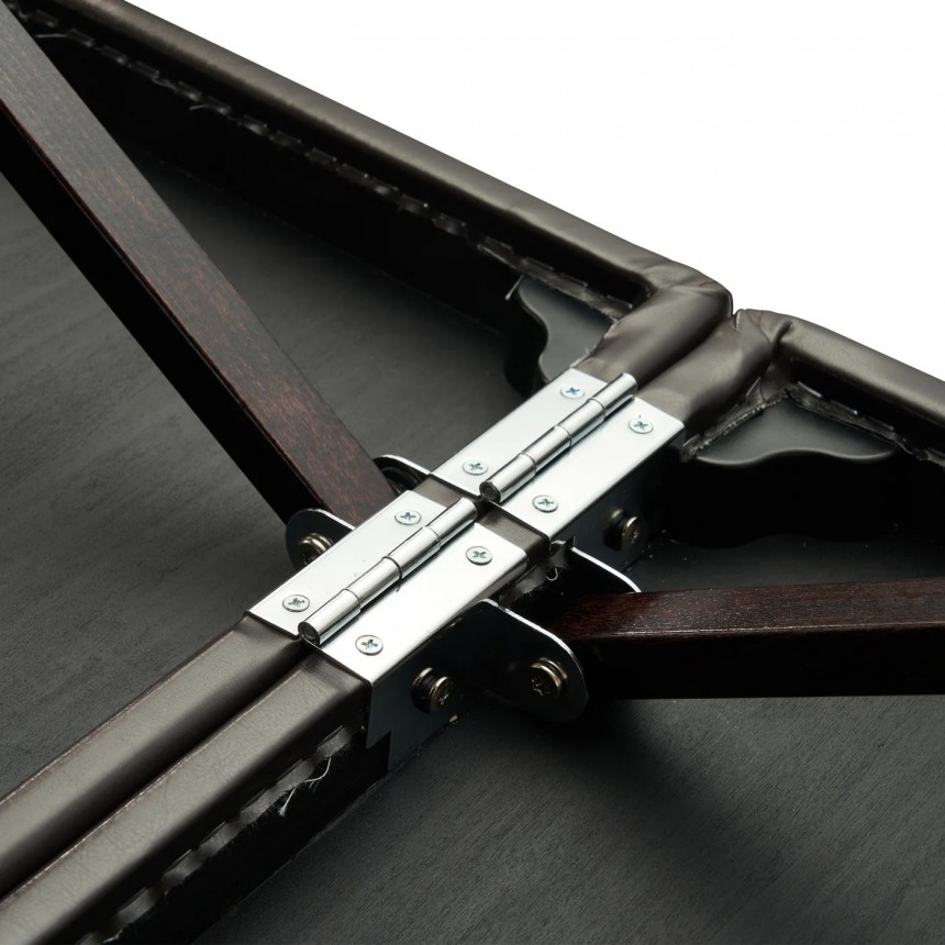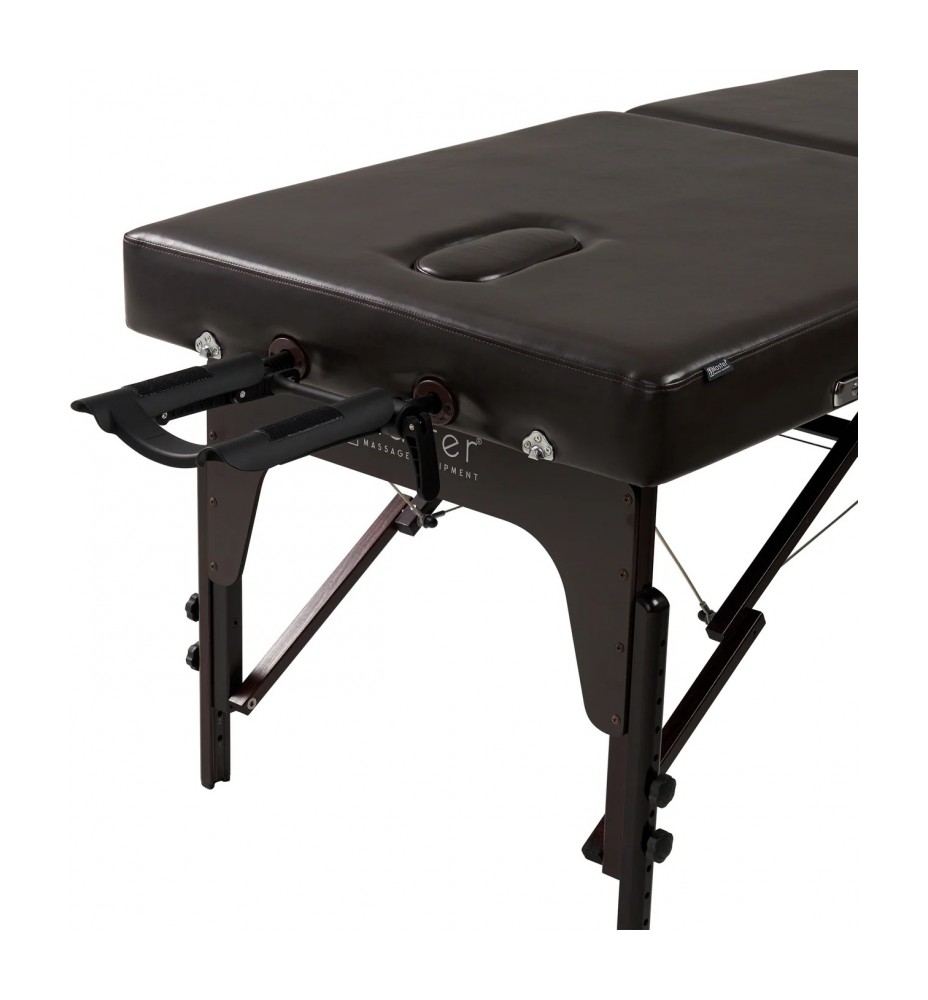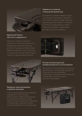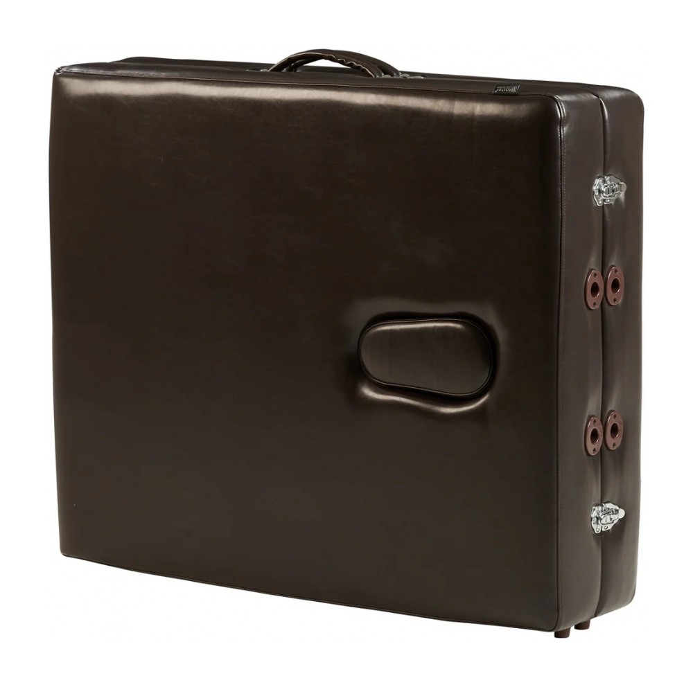 -Вся деревянная конструкция — не содержит формальдегид и канцерогены, соответствует строгим экологическим требованиям штата Калифорния (CARB). -Увеличенное ложе BIG TOP™ — на 26% больше мягкой поверхности благодаря расширенным плечевым зонам. -Прямоугольные углы — обеспечивают более естественную и расслабленную поддержку плеч, согласно анатомическим исследованиям. -Матрас толщиной 7.6 см (3 дюйма) из многослойной пены Small Cell Foam™ — включает слой пены с эффектом памяти (Memory Foam). -Анатомическое лицевое отверстие с заглушкой — удобно для клиента и практично в ограниченном пространстве. -Reiki-панели — усиленные панели под ножками в 2 раза прочнее стандартных, для лучшей устойчивости. -Обивка Italia PU — водо- и маслостойкая, без CFC, усилена джинсовой подкладкой для повышенной износостойкости. -Ножки из твёрдой древесины цвета кофе — покрытие Dura-Seal™ придаёт глянец и защищает от повреждений. -Система Auto-Lock™ — моментальная и надёжная установка стола. -Пронумерованные отверстия — для быстрой и точной регулировки высоты. -Петли DUO-PLANE™ — обеспечивают максимальную прочность по центру стола. -Нескользящие и не пачкающие ножки — безопасны для любого типа напольного покрытия. -Нейлоновые вставки в ножках — исключают скрипы и расшатывание. -Стабилизирующая перекладина — усиливает конструкцию и облегчает складывание. -Крепления Clevis Block™ — гарантируют прочное и надёжное крепление ножек. -Регуляторы высоты QUIK-SET™ — позволяют менять высоту с усилием на 70% меньше, чем у стандартных ручек. -Двойные застёжки чемоданного типа — надёжно фиксируют стол в сложенном положении.