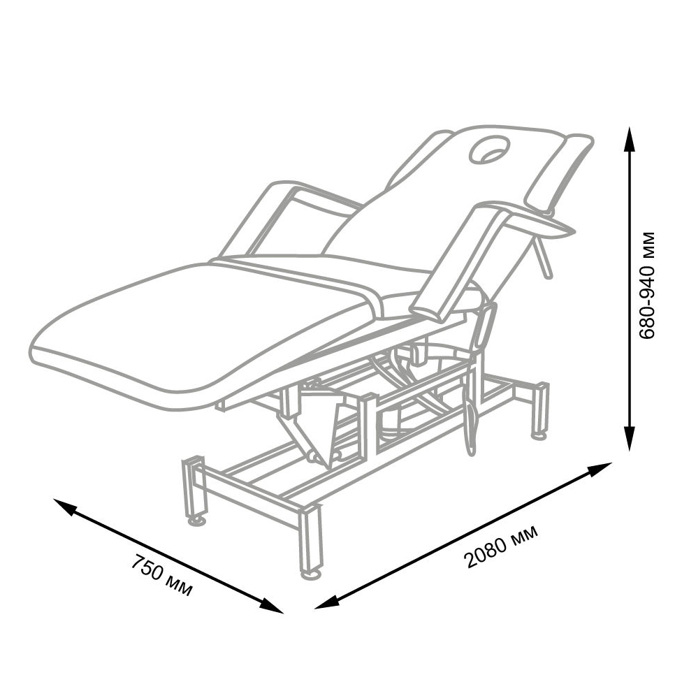 Характеристики кушетки массажной MEDI-849 (электропривод, 3 мотора):